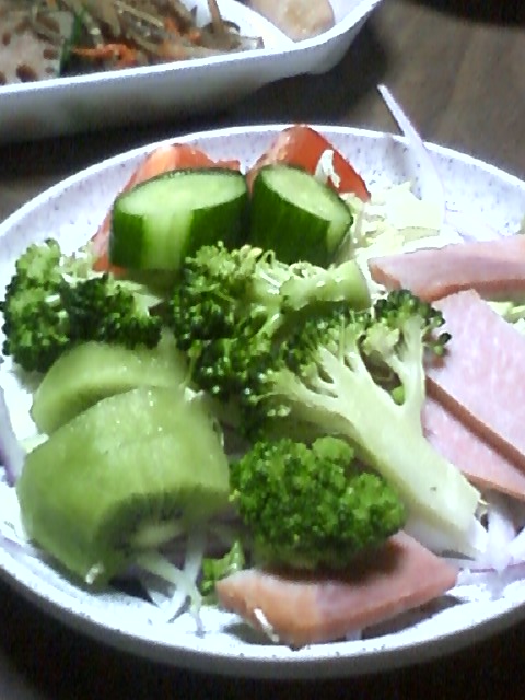 さてさて今日の昼ごはんは、白米、味噌汁、焼き鮭、トマト&ブロッコリー、野菜サラダ