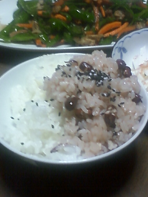 赤飯は、昨日の残りなんだろうけど、ふつうごはんの上に盛らんやろ。