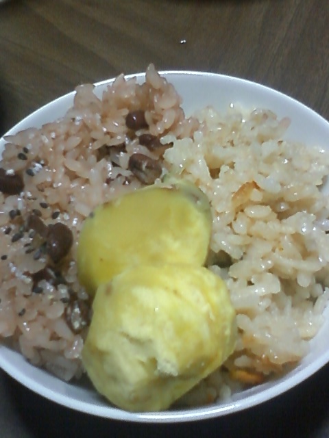 今日のご飯は、赤飯&炊き込みご飯+栗