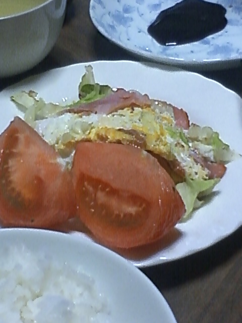 いつも味がないけど、今日はベ-コンを使っとったので、味が出てちょうどの塩加減
