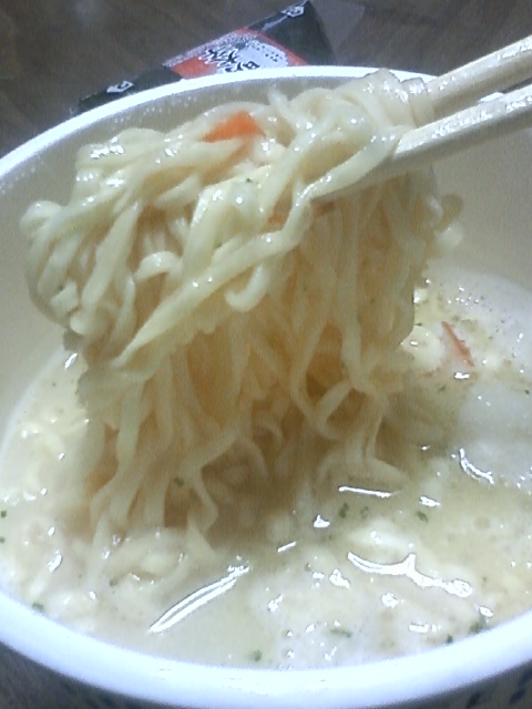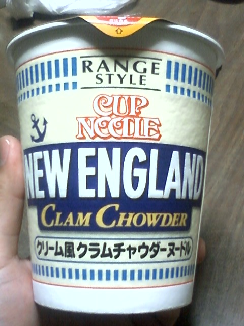カップヌードルの『NEW ENGLAND クラムチャウダーヌードル』ってヤツと私の左のおてて
