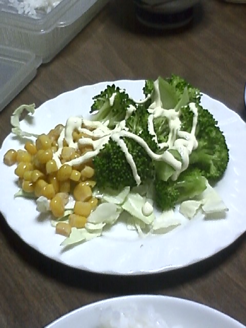 今日のサラダは、コーンがついている。