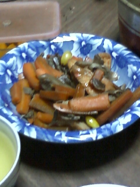 なんか、はんぺんと舞茸とニンジンとぎんなんを一度に煮たもの