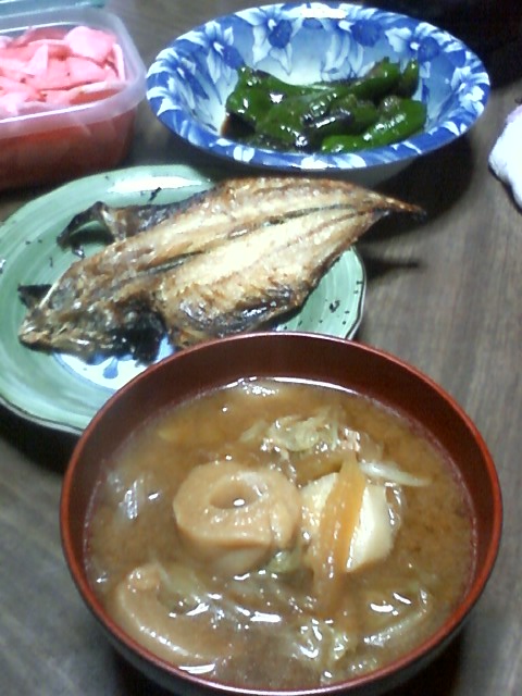 みそ汁とあじとピーマン