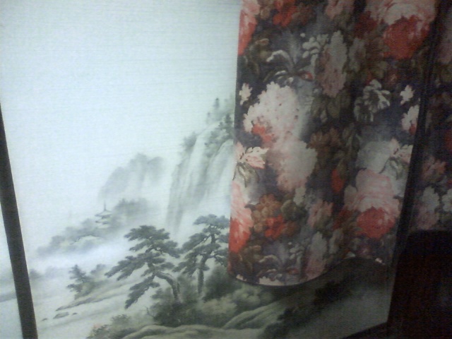 ほら、こうすると服の模様がふすまの柄に溶け込んで見えます。
