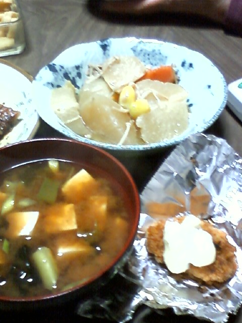 あと、みそ汁と大根の煮物