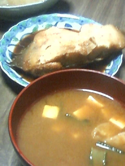 体調もだいぶん復活した今日の昼ご飯は、白米、みそ汁、魚の煮付け、おでんの残り、サラダ