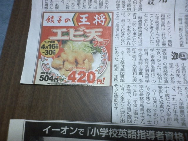 新聞のテレビ欄を読んでいると、一部分が切り抜かれているのに気付いた。