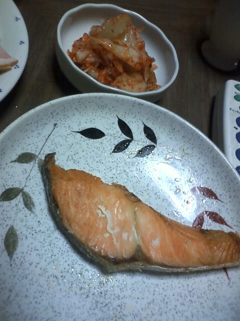 焼き鮭とキムチ