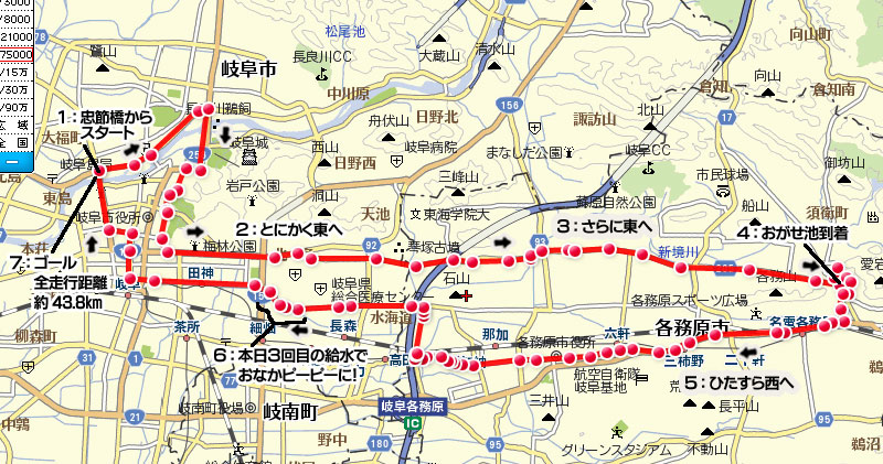 上の地図の6の辺りで3回目の給水をしたらお腹こわしまして、ヘロヘロでしたが急いでかえる羽目になってしまいました。