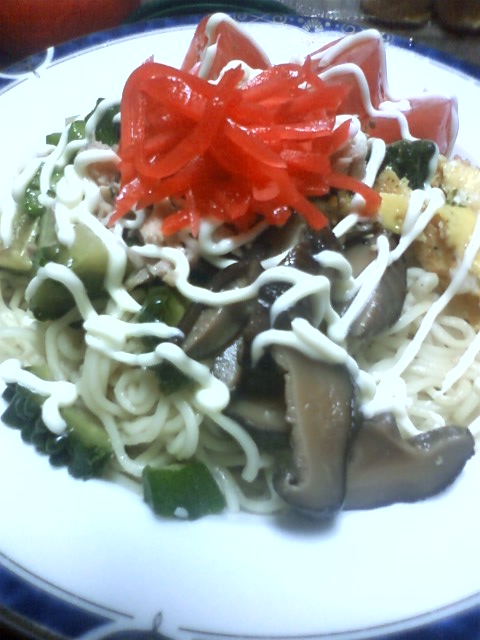 冷やし中華のトッピングはこんな感じ。