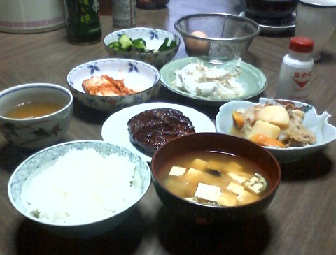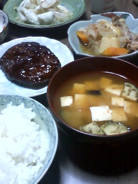 みそ汁とハンバーグ?と肉じゃがとちくわナムル?