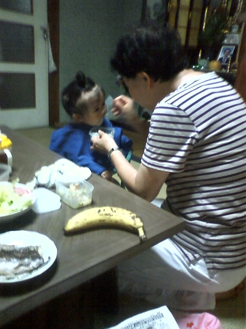 おかんと娘2号の餌付け食事シーンです。