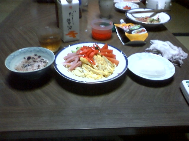 今日の昼ご飯は、冷やし※※、豆腐、赤飯