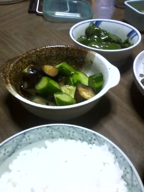 いつものきゅうりの浅漬けに今日はナスも参加。