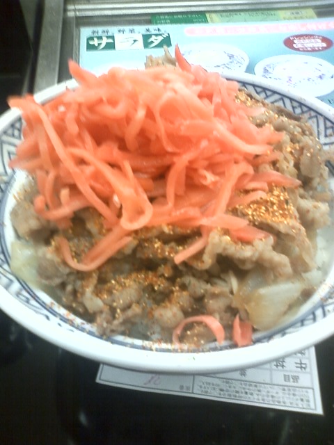 五島に住む元バーのマスターは、一回の吉牛で紅しょうがのケース1杯分ぐらい使うそうです。