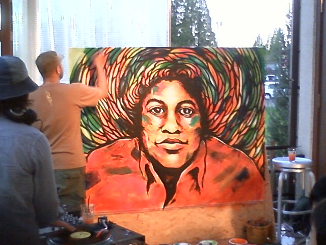 10/11(日)にバムズホームというところで、岐阜市出身のアーティストNOVOLくんのライブペイント(その場で絵を描きあげます)のイベントがあったので、見に行ってきました。