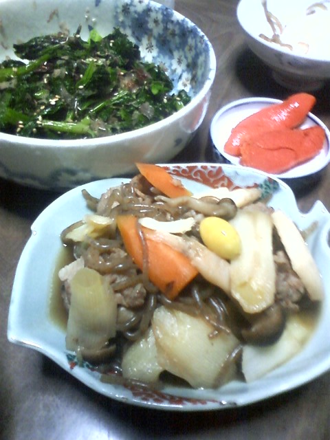 すき焼き風のものとほうれん草と明太子