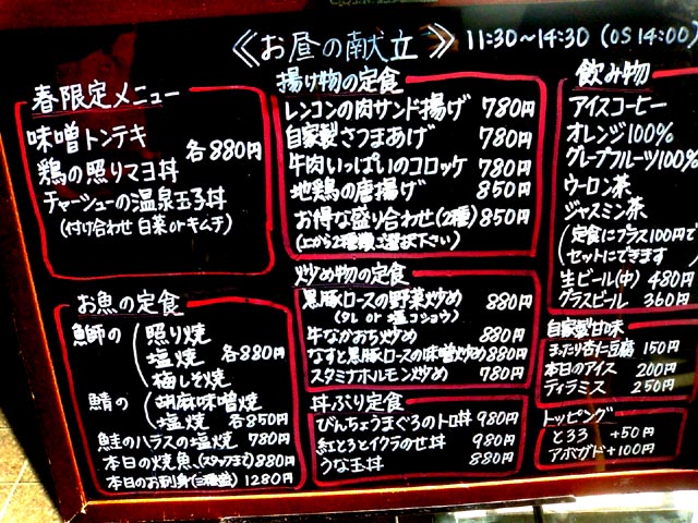 お店の前にメニューが出てたので見てみたところ
