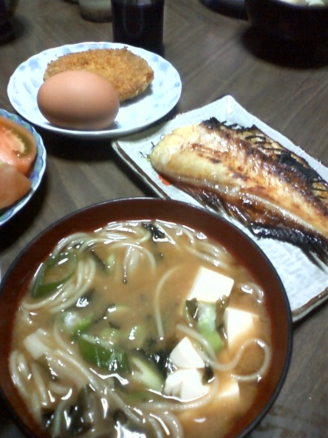 そうめん入りみそ汁と焼き魚