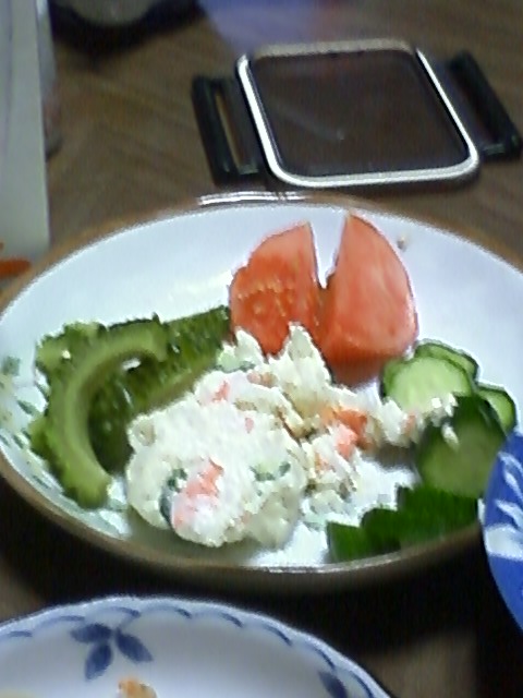 ポテトサラダ、ゴーヤ、きゅうり、トマト