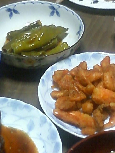 エビのから揚げと焼ピーマン