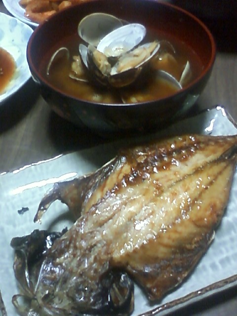 あじの開きとあさりのみそ汁