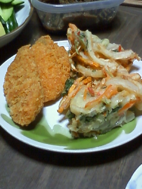 かき揚げと白身フライ