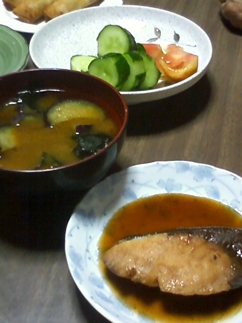 ぶりの照焼きとみそ汁と野菜