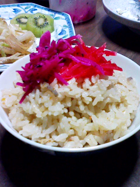 昨日と比べて、紅しょうががないだけで彩りが地味である。