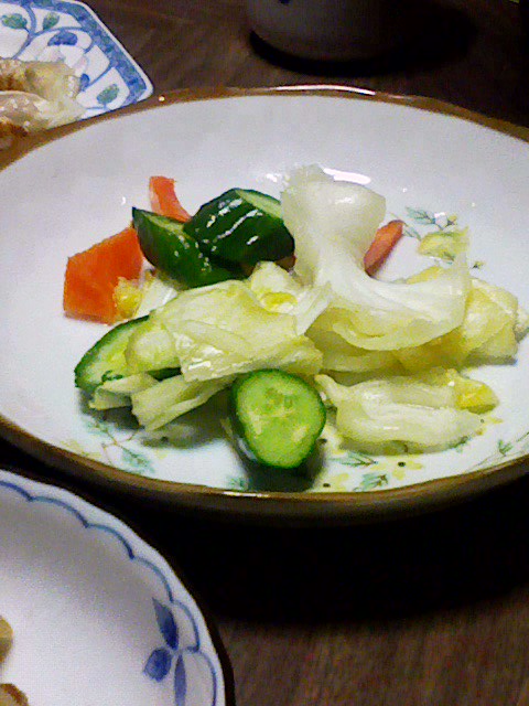 また掟を破って、漬け物と生野菜の盛り合わせ作りよった!