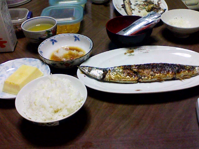 ごはん、さんま、玉子とうふ、インスタントのみそ汁