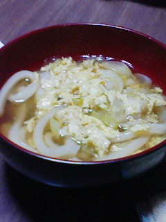今日は、卵とじうどん、じゃこおろし、焼鮭、なまやさい