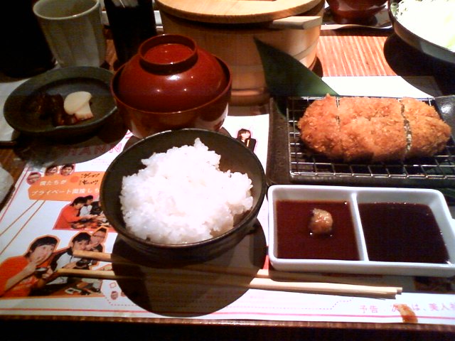 左:お昼ごはんは「キムカツ」というところへ行きました。有名なトンカツ屋だそうです。