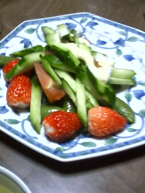 餃子とキュウリの漬物と山菜1(たぶんわさび菜)
